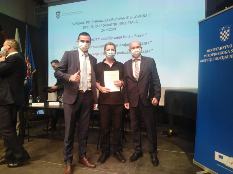 Predsjedniku Centra za ruralni razvoj CERURA HR, g. Stipi Efendiću, ugovor su uručili ministar rada i mirovinskoga sustava Josip Aladrović te ravnatelj Hrvatskog zavoda za zapošljavanje Ante Lončar.